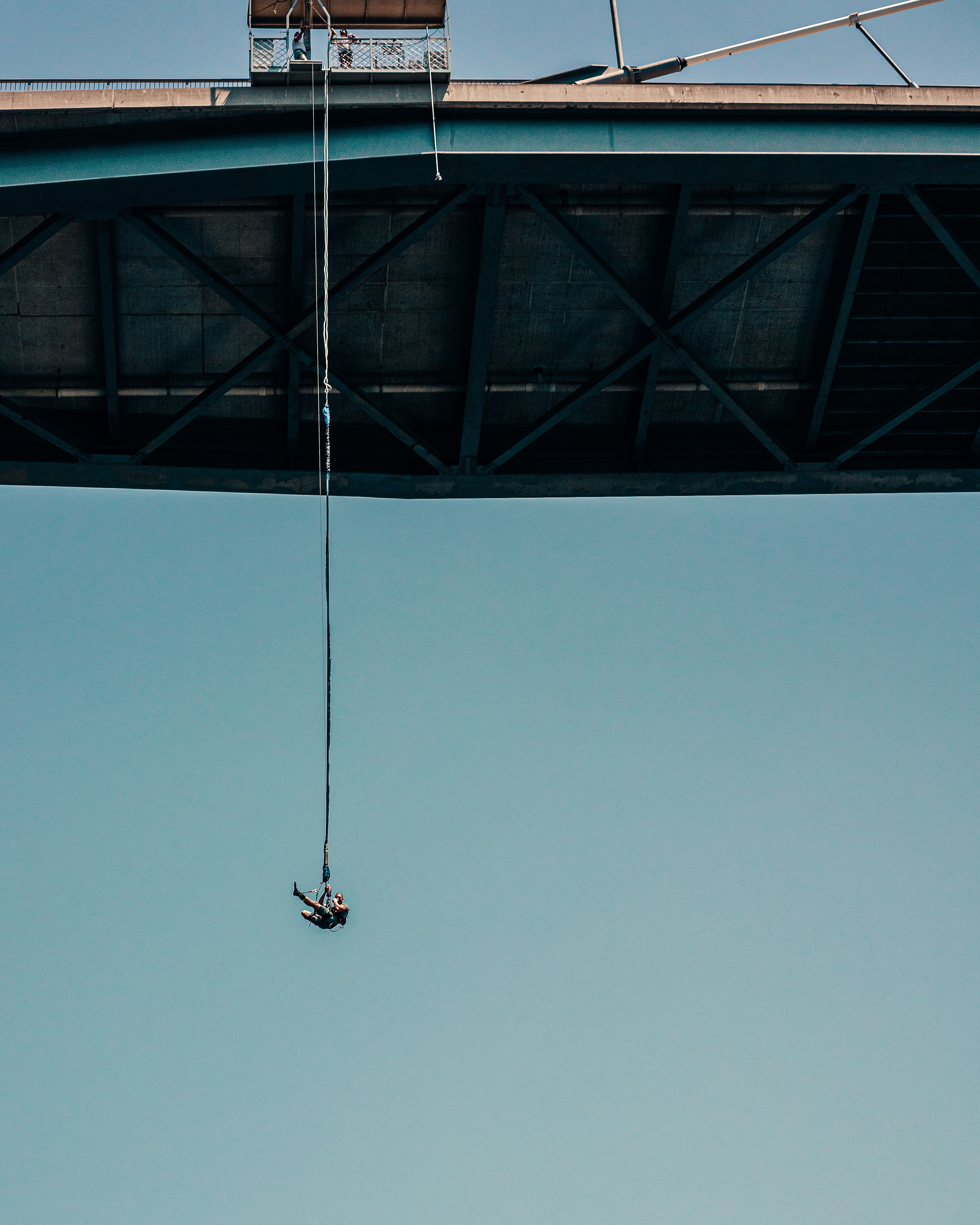 당시 저에게 번지점프 값 5만 원은 엄청난 거금이었어요. 결코 돈을 허투루 쓰는 법이 없는 제가 5만 원을 냈다는 건 확실히 번지점프를 뛰고야 말겠다는 강한 의지가 있었다는 뜻입니다. 낡고 흔들거리는 엘리베이터를 타고 55m 위에 올라서기 전까지는 말이죠.