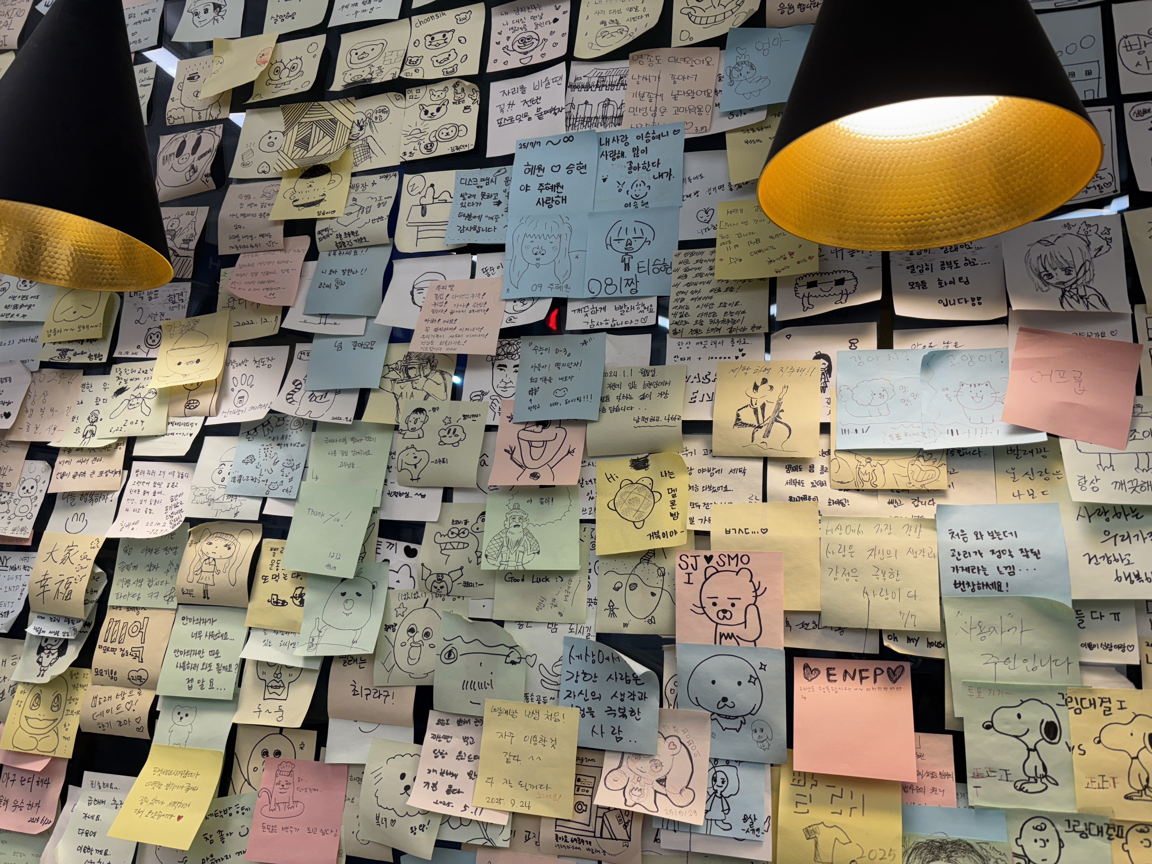 저희 동네 빨래방에는 손님들을 위해 준비한 포스트잇과 펜이 있습니다. 빨래를 기다리는 동안 손님들이 지루하지 않았으면 하는 사장님의 배려겠지요. 손 글씨가 사라진 시대에 누가 이런 걸 쓸까 싶기도 하지만, 신기하게도 빨래방 한쪽 벽에는 빨래방에 다녀간 수많은 사람들이 쓰고 간 메모들이 다닥다닥 붙어있습니다.